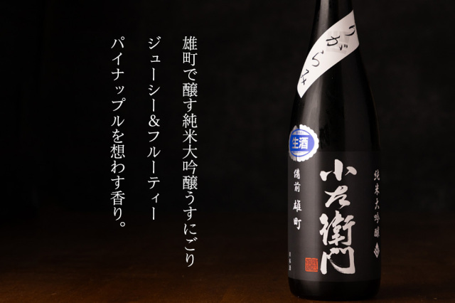 | 製品名: | 小左衛門 こざえもん 純米大吟醸 雄町 おりがらみ生 |