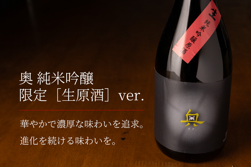 愛知県産酒米「夢山水」を100%使用した贅沢な一本。 季節限定の生原酒バージョンです。 開栓とともに立ちのぼるのは、控えめながらも凛とした吟醸香。 青リンゴや洋梨を思わせる瑞々しい香りが、すっと鼻をくすぐります。 口に含めば、生原酒ならではのフレッシュで濃厚な旨みが広がり、夢山水の澄んだ甘みと繊細な酸が美しく調和。 濃醇でありながら重たさはなく、口の中を清らかに洗うような透明感と、心地よいキレがあとを引きます。 しっかりとした旨みと切れの良さを併せ持つ味わいを是非お愉しみ下さい。 【詳細】 奥 純米吟醸原酒 生酒 夢山水十割 原料米:夢山水 精米歩合:60% 日本酒度:+2 酸度:1.8 アミノ酸度:1.3 アルコール度数:18.5度